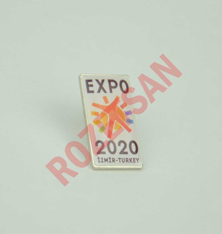 Nikel kaplamalı, dikdörtgen kontürsüz rozet